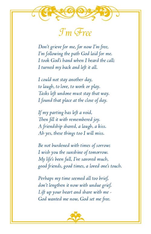 Includes these prayers; "A Word of Consolation", "Comfort for Those Who Mourn," and, "I'm Free."