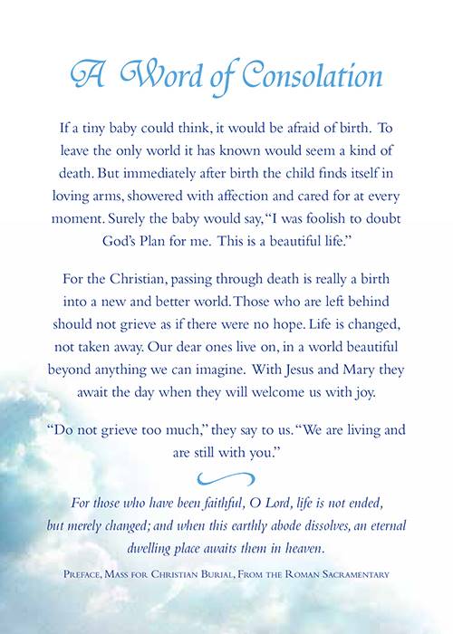 Includes the messages: "Words of Consolation" and "Comfort for Those Who Mourn."