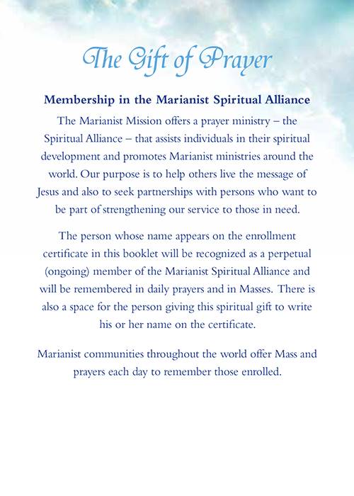 Our booklets can be customized with gold lettering on the Spiritual Alliance certificate page for $2.00. The names of the recipient(s) or family name and the sender’s name are imprinted in gold. If you wish for us to emboss the names in gold, please scroll up to enter the appropriate names in the spaces provided.