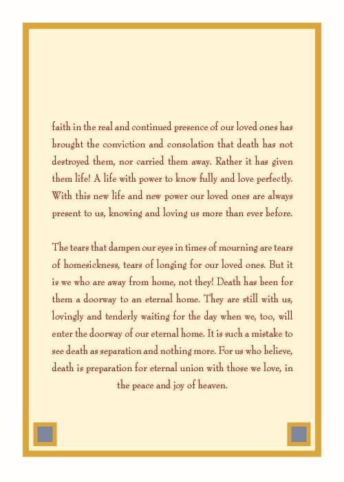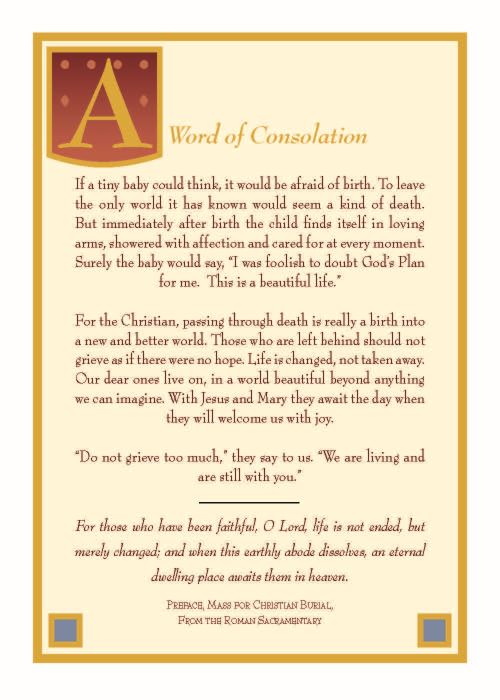 This eight-page booklet contains the message, "A Word of Consolation and Comfort for Those Who Mourn."